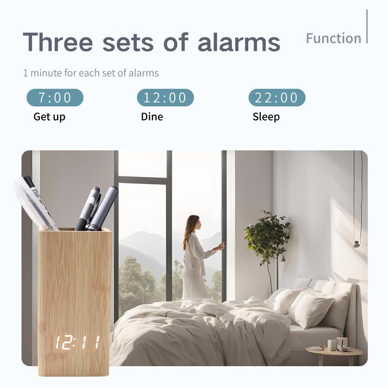 [Desktop Pencil Holder]: To meet your different needs, the Digital Alarm Clock Pen Holder includes a desktop pencil organizer to keep your desktop tidy at all times.
