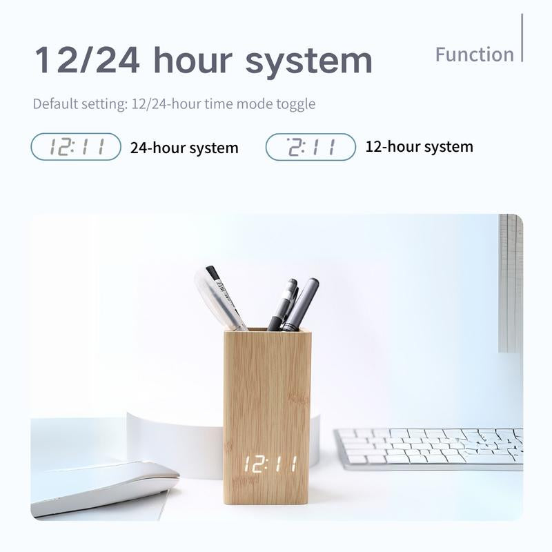 [Digital Alarm Clock with Pen Holder]: Alarm Clock with Pen Holder and Alarm Clock with Pen Holder support 12/24 hours display, alarm and snooze functions; Desk Clock with Pen Holder and Digital Pen Cup are very quiet to ensure you have a good night's sleep and optimal working environment